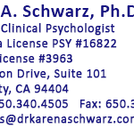 Achieving goals always takes hard work, and the psychotherapy process can be both difficult and painful. Dr. Schwarz will support you when it hurts yet challenge you to become your best self. She is here to work with you and for you. Thank you for considering Dr. Schwarz as your treating psychologist.